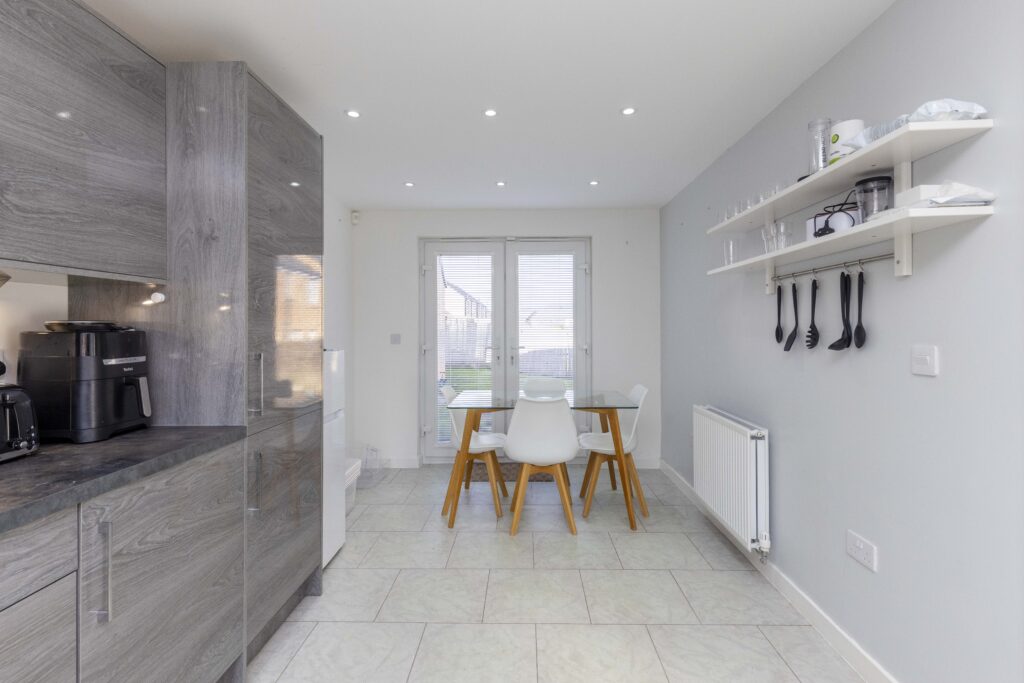 Nieruchomość oferuje idealne połączenie spokojnego otoczenia z łatwym dostępem do tętniącego życiem centrum Edynburga. W pobliżu znajdują się sklepy, cenione szkoły oraz doskonałe połączenia komunikacyjne – wszystko, czego potrzeba do komfortowego życia.
