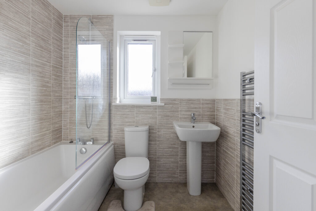 -Stylowa łazienka rodzinna – uzupełniona o praktyczną toaletę na parterze