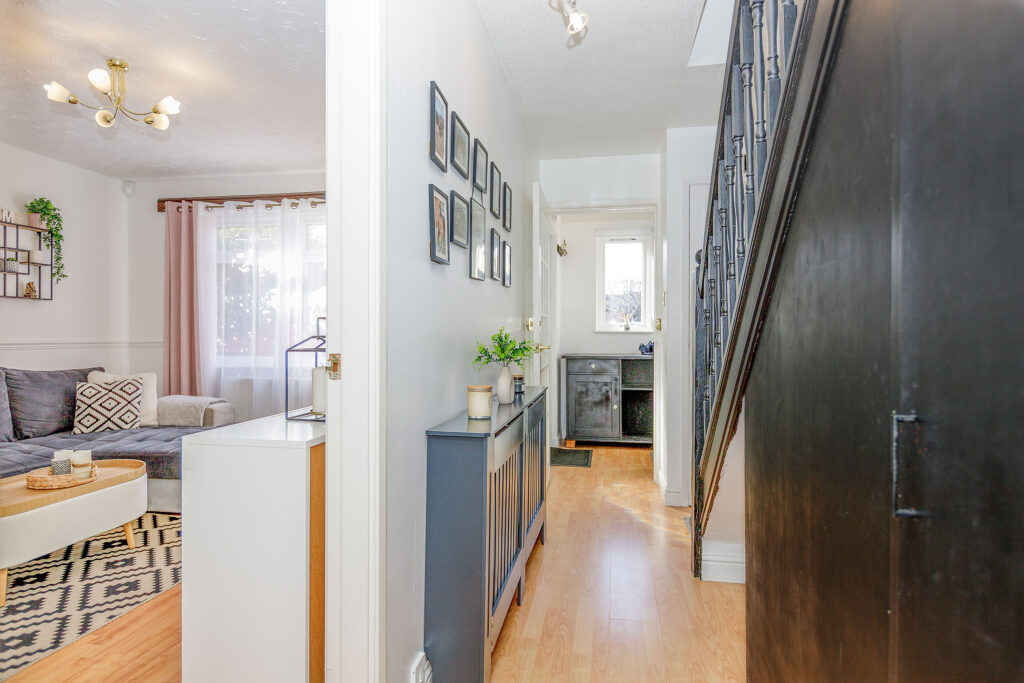 The home enjoys private gardens to both the front and rear. The rear garden includes a patio area, ideal for outdoor dining or enjoying sunny days. A private driveway offers convenient off-street parking for up to two vehicles.