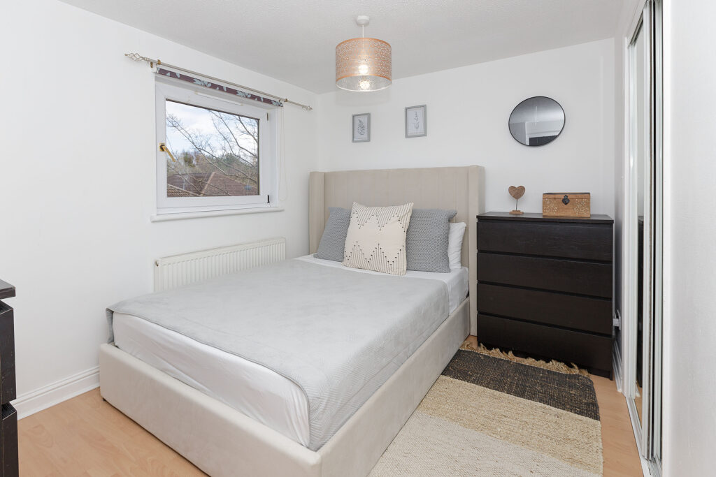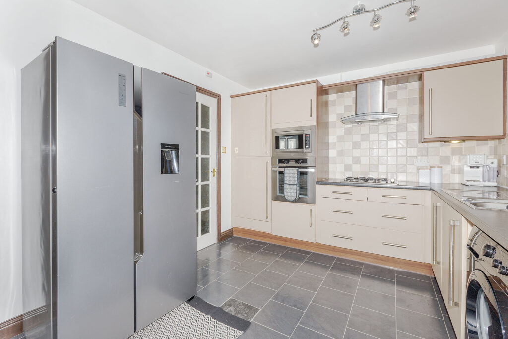 There are three well-proportioned bedrooms, offering versatile accommodation for family living, guests, or a home office. The stylish bathroom features modern fittings and a sleek, contemporary design.